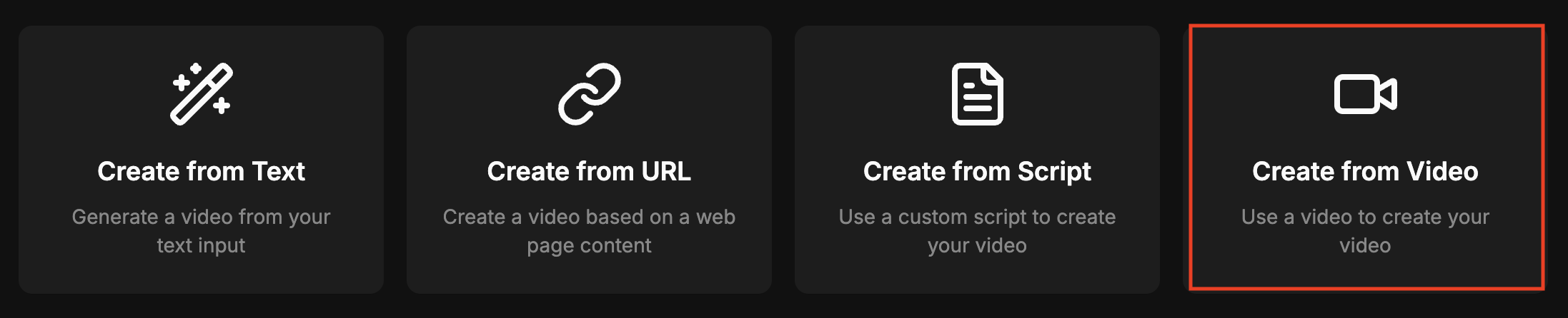 This will guide you in creating a brand-new video from an existing one using the Create from Video feature.