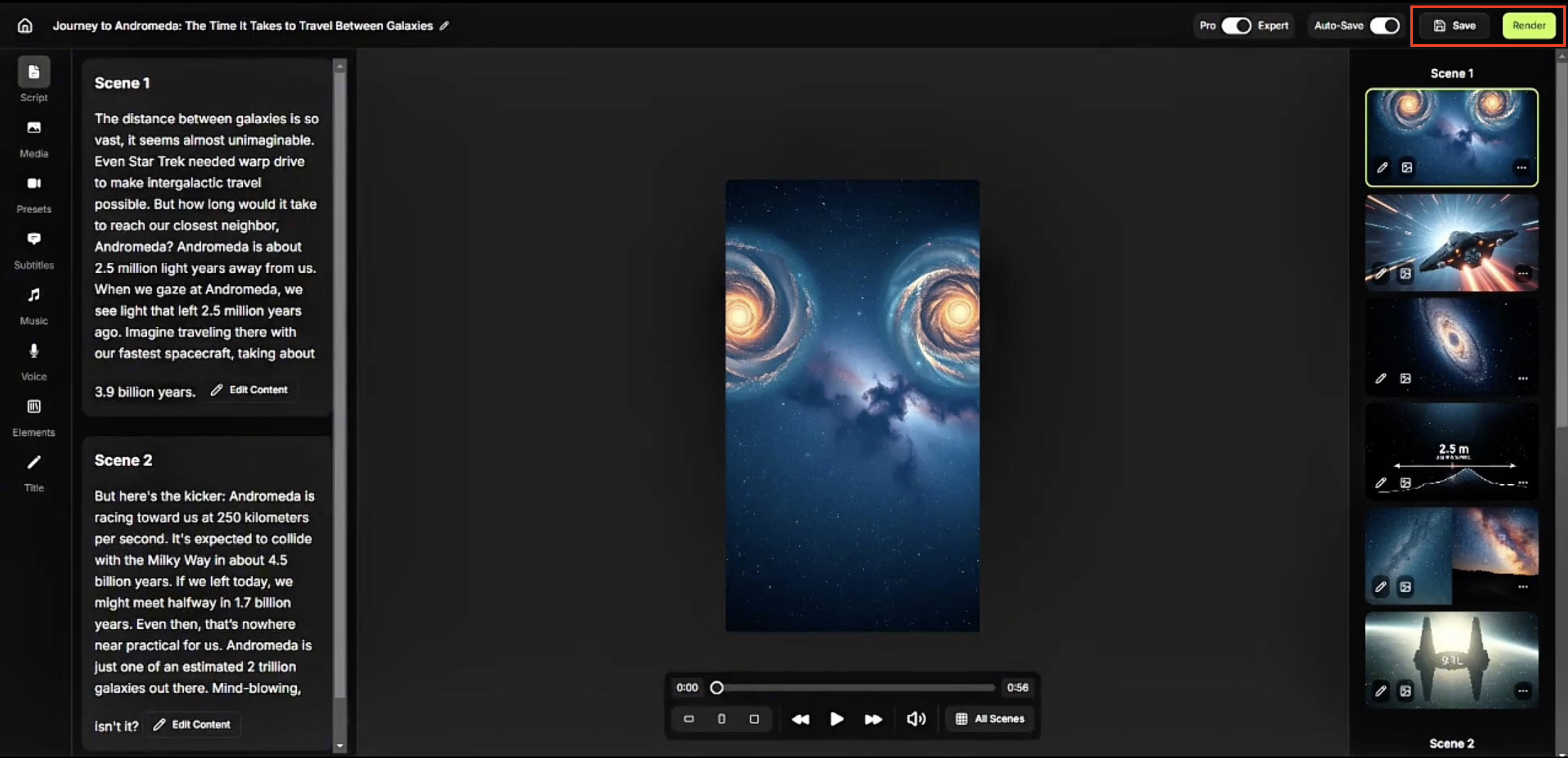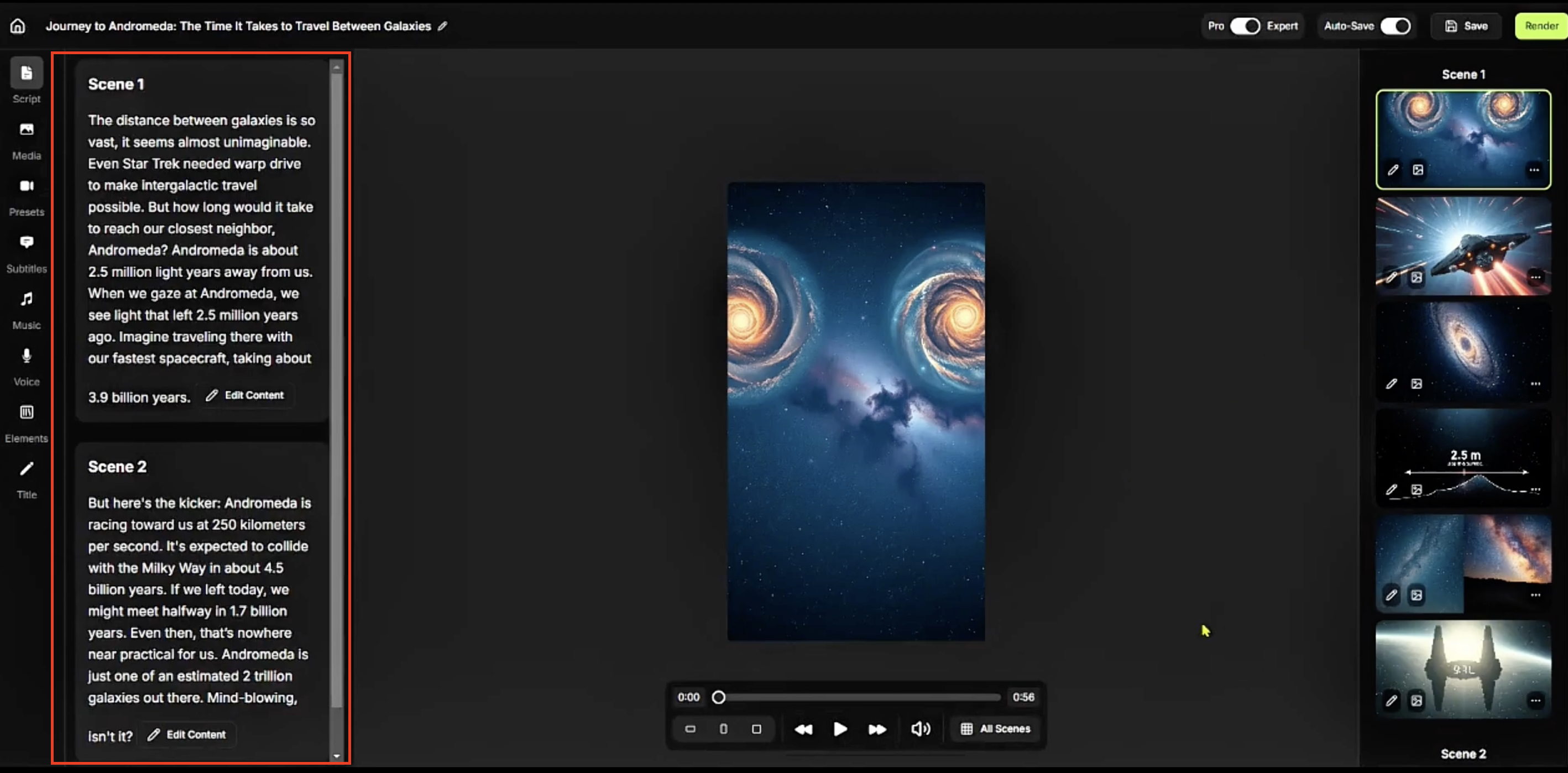 Or use the left pane to revise the script or add/remove scenes.