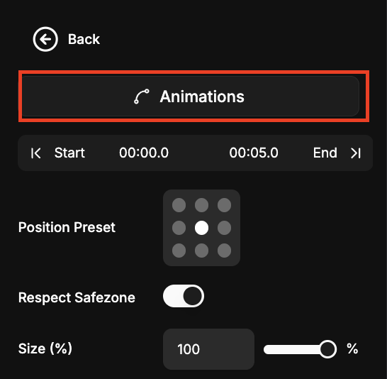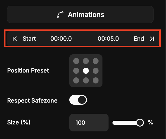 Click Start to match the beginning of the video or End to match the end of the video. Then, adjust the position, size, and animation.