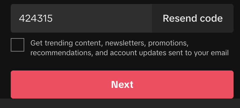 Enter the code on TikTok and click Next.