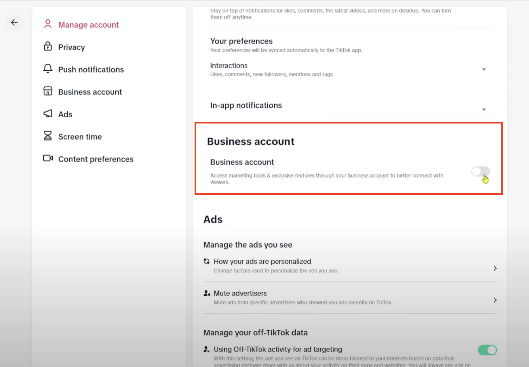 Scroll down and select Business Account.