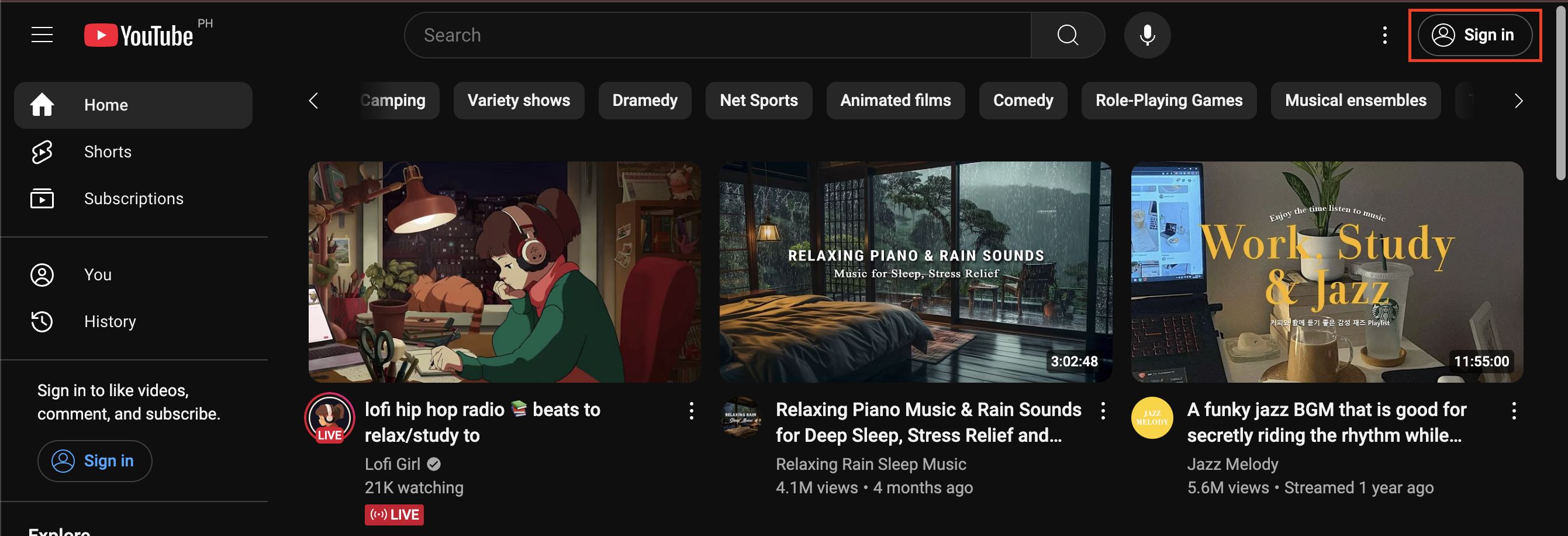 Click Sign In at the top right.