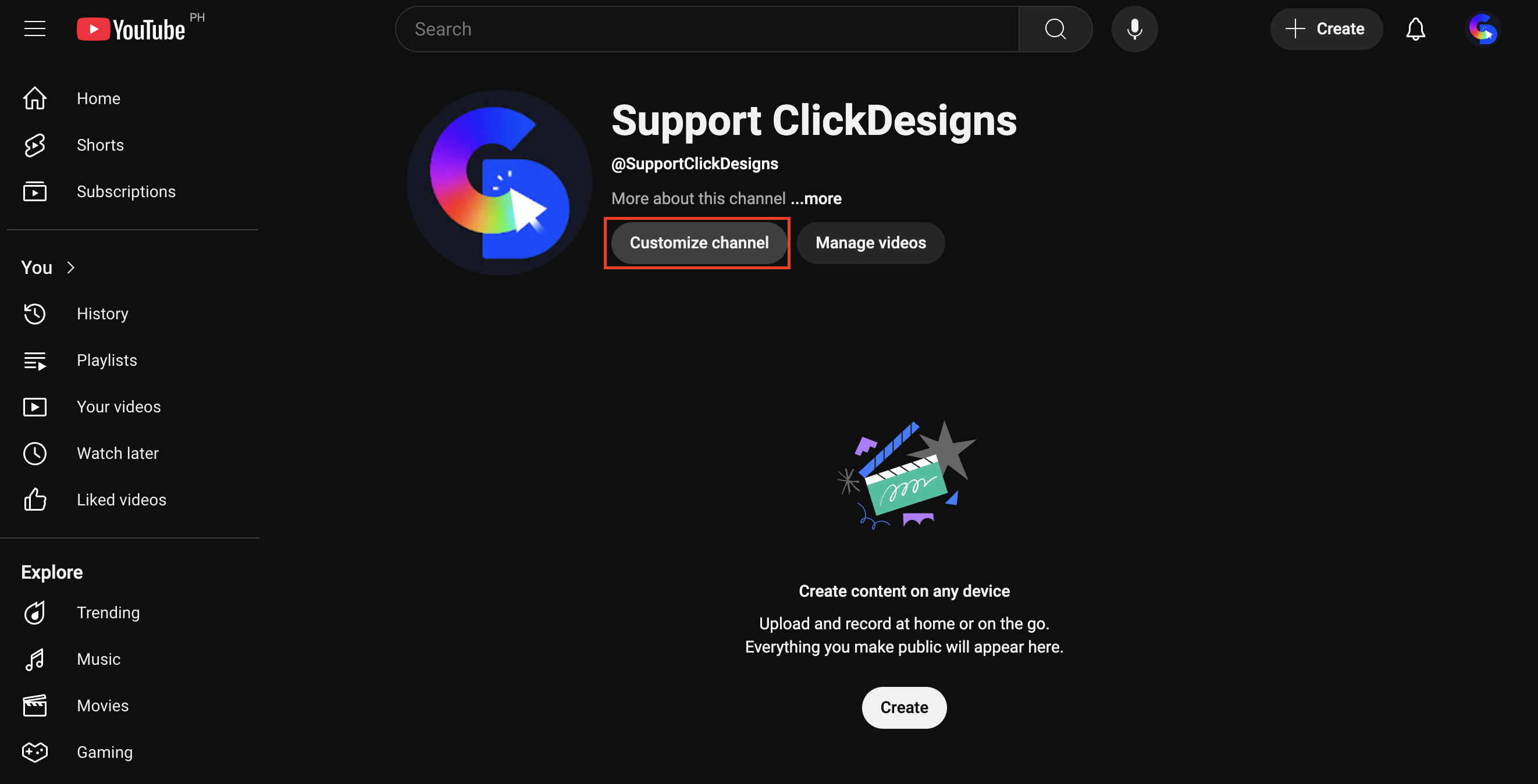 Click Customize Channel to enter YouTube Studio.