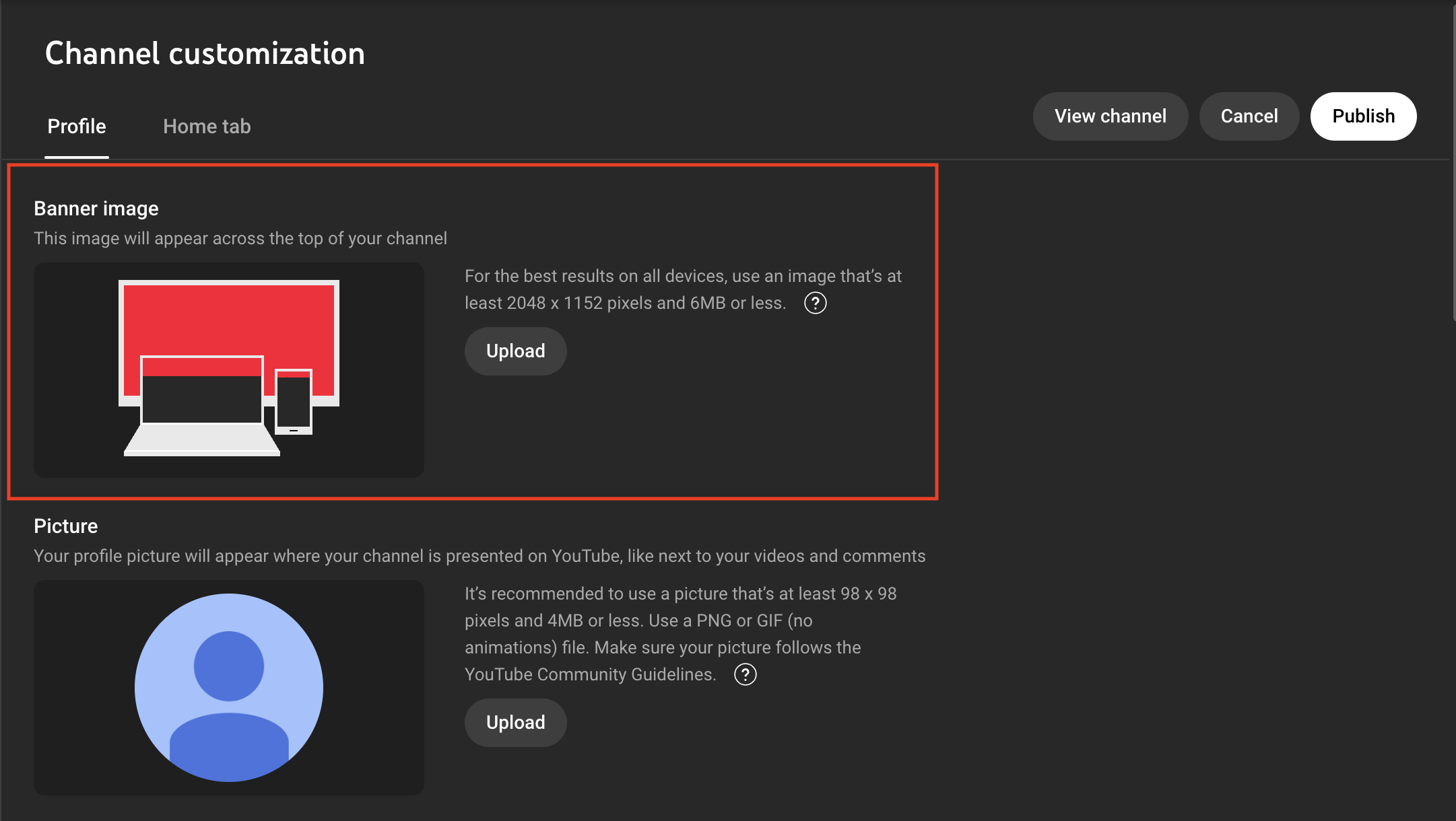 Add a banner image to give your channel a professional look.