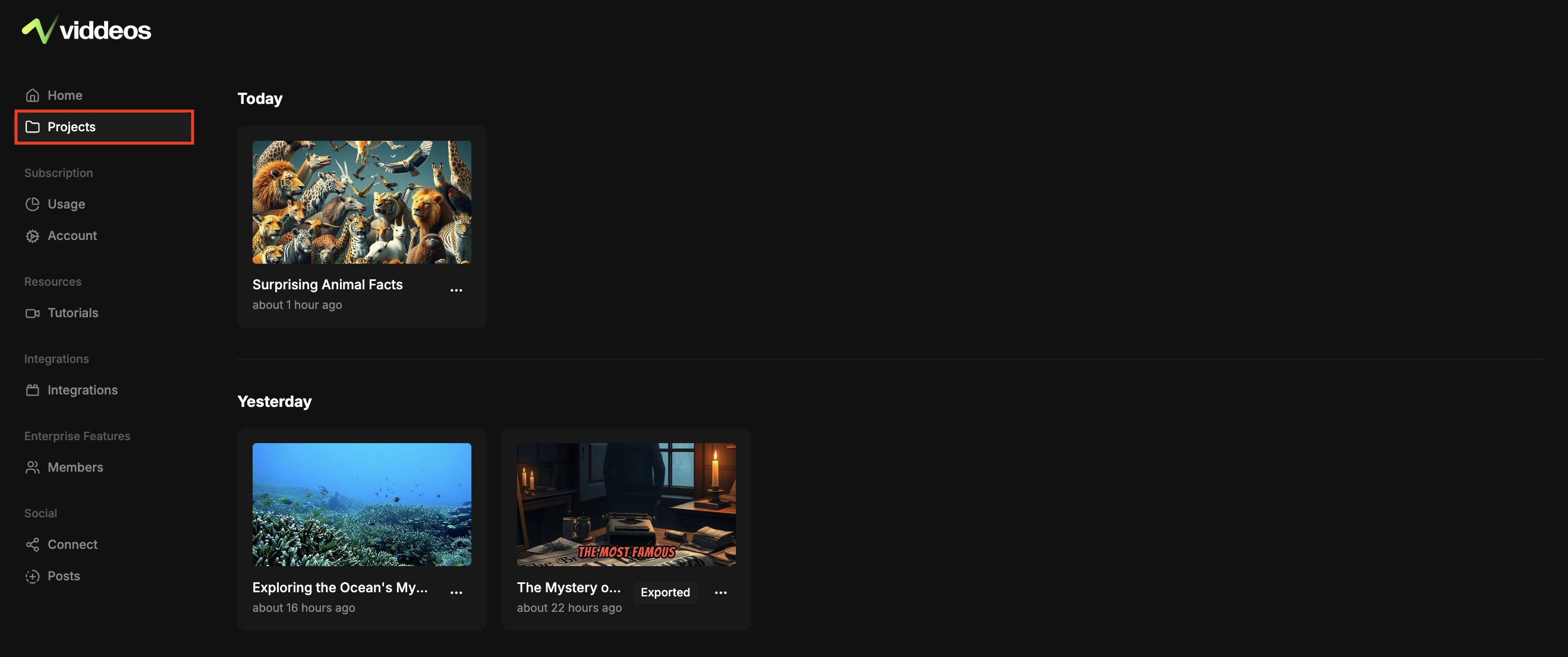 After editing and rendering your video, go to the Projects tab to access all your video projects.