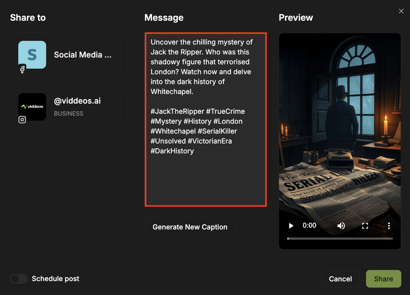 Paste the caption and hashtags from Viddeos AI into the description.
