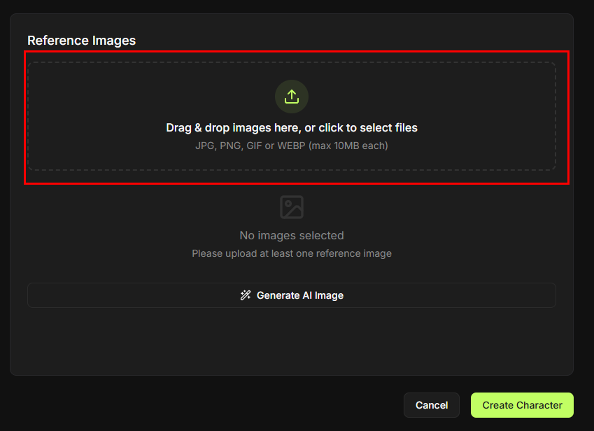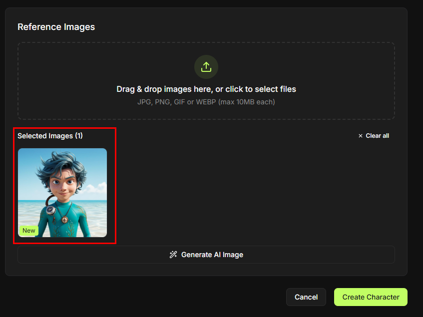 - Once uploaded, the reference image(s) will appear in the preview area.