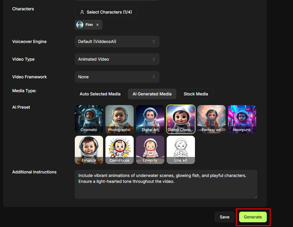 That’s it! You’ve successfully created and used a custom character in Viddeos AI.
